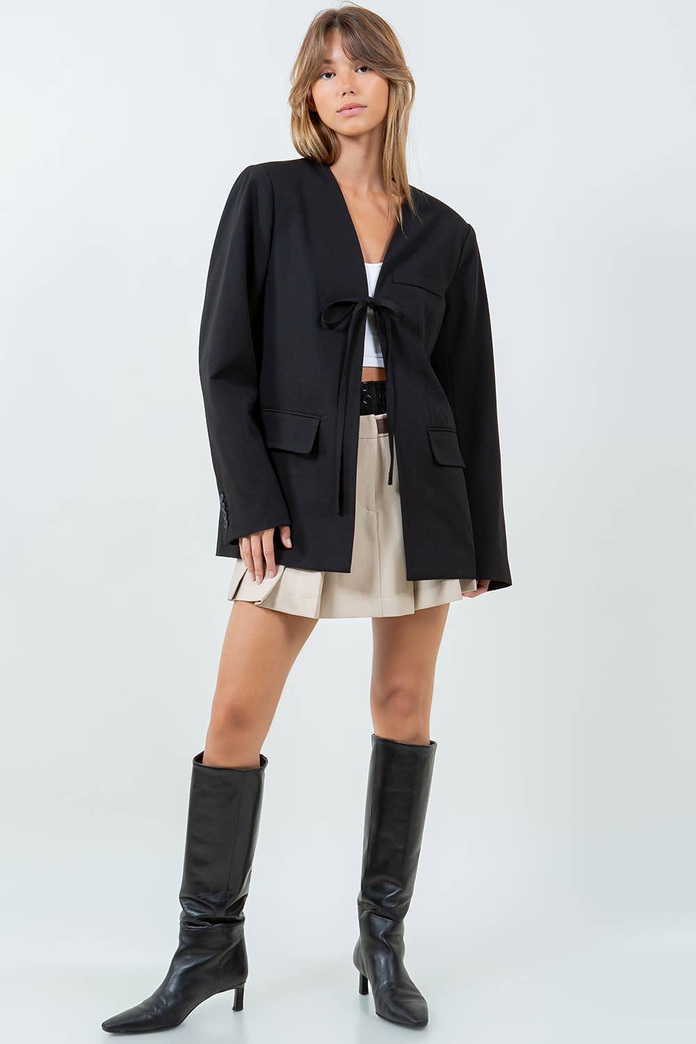 Front Tie Blazer Jacket
