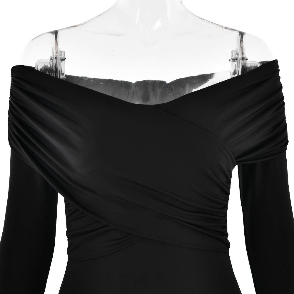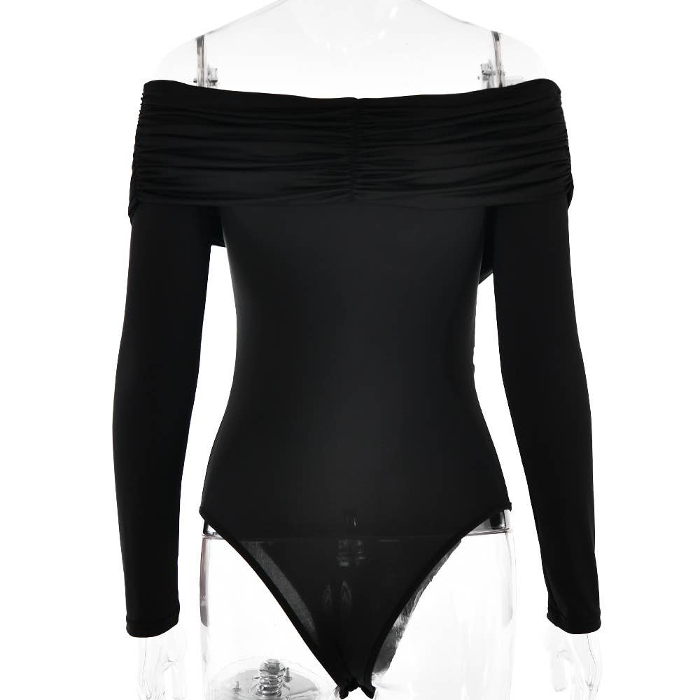 New slip V-neck off shoulder top long-sleeved slim bodysuit.
