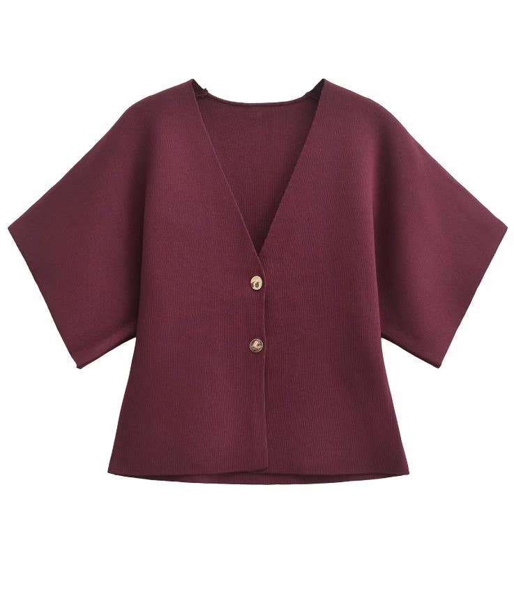 SHORT SLEEVED FINE KNIT CARDI WITH GOLD BUTTONS