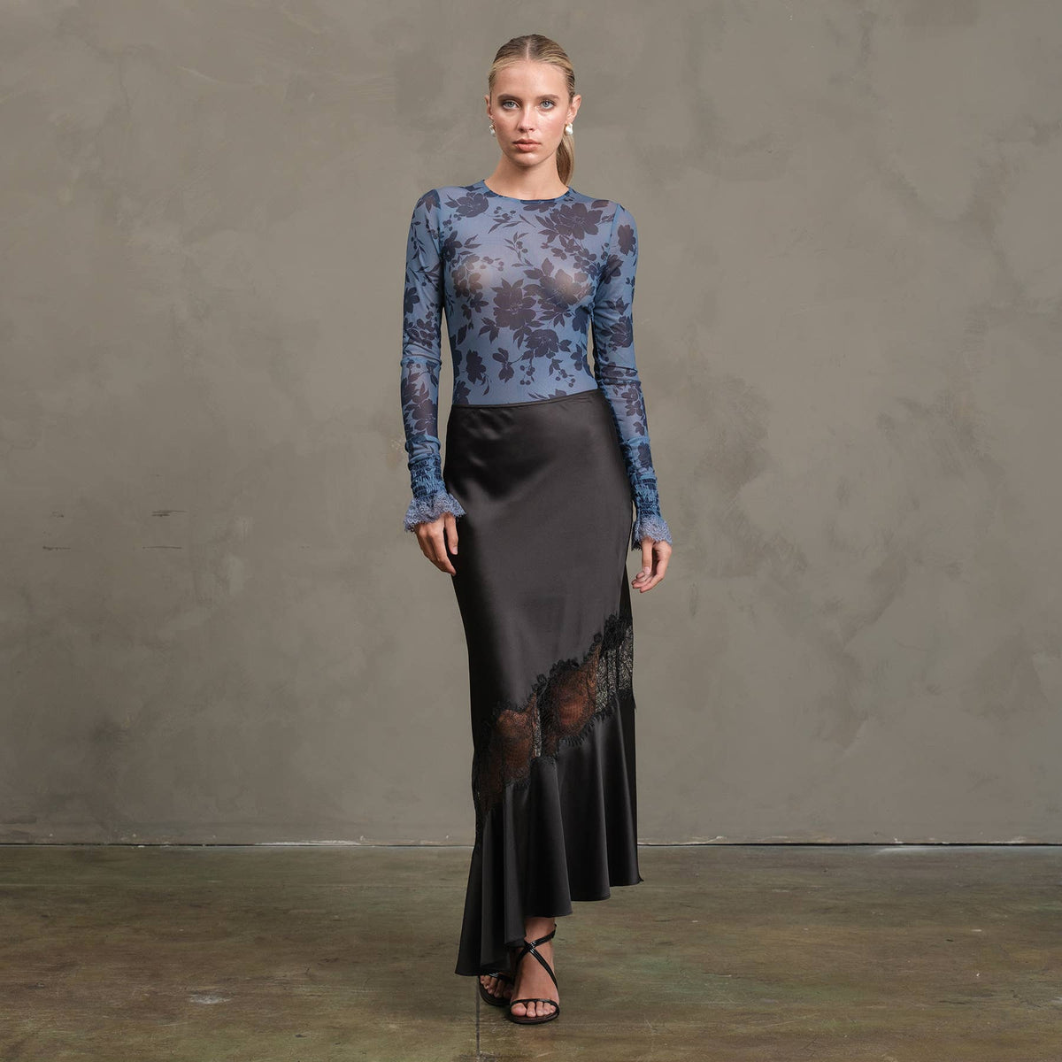 L8611 | Knit Tencel Jersey Turtleneck Long Sleeve Sheer Top