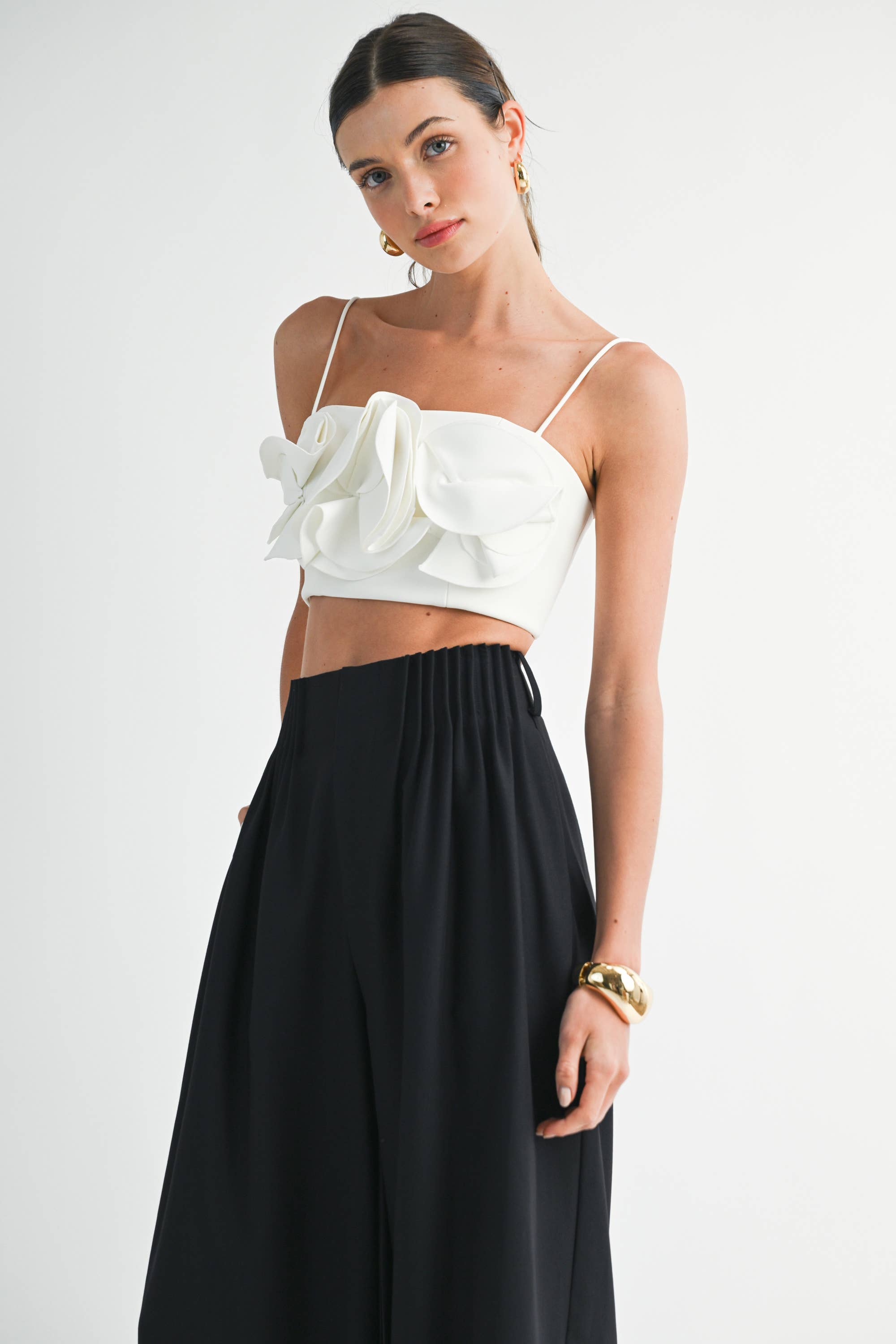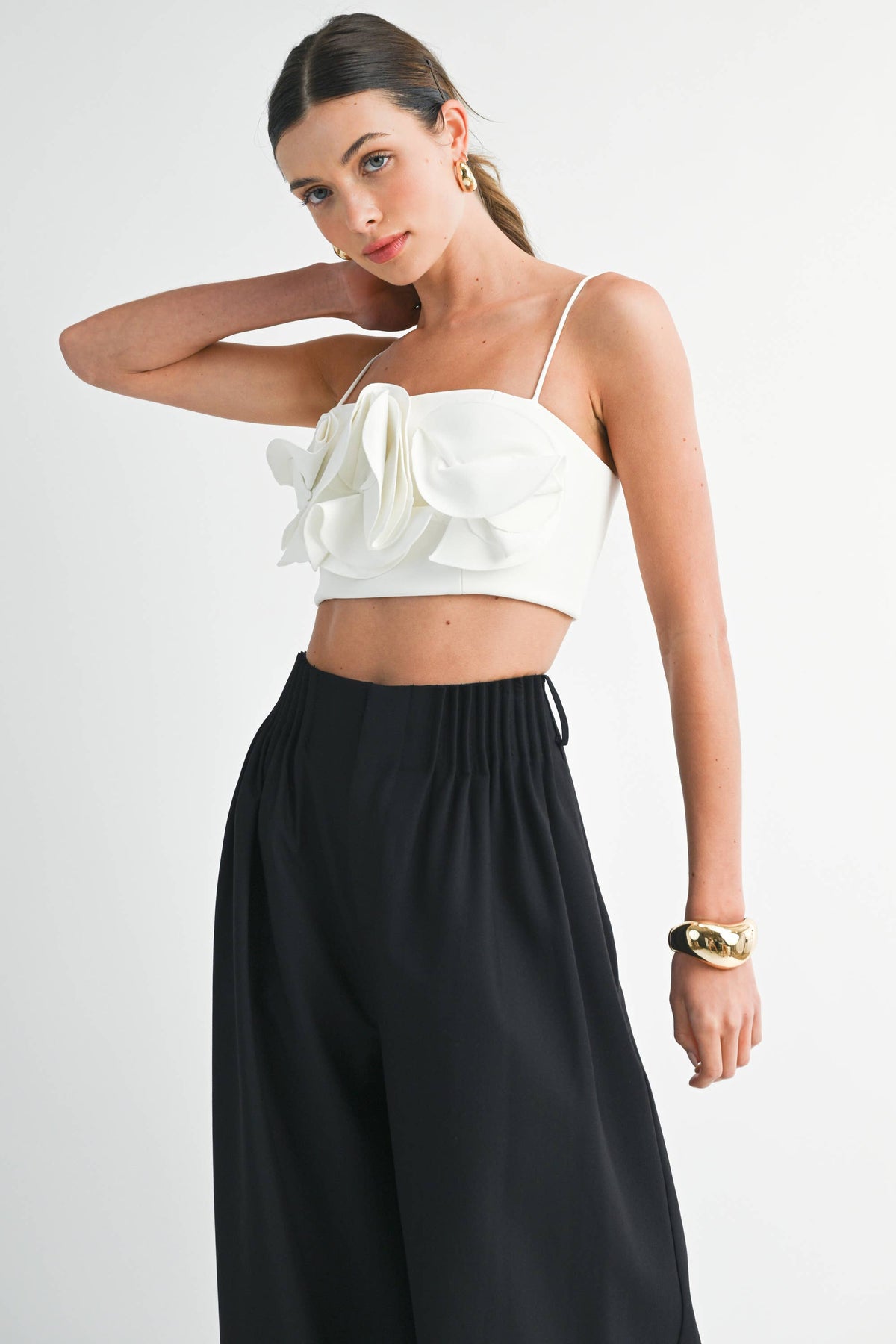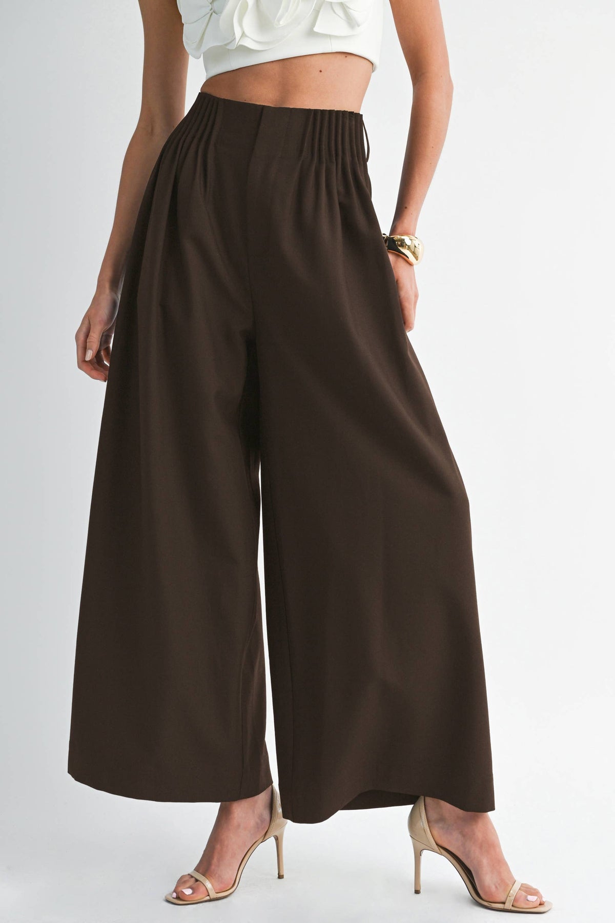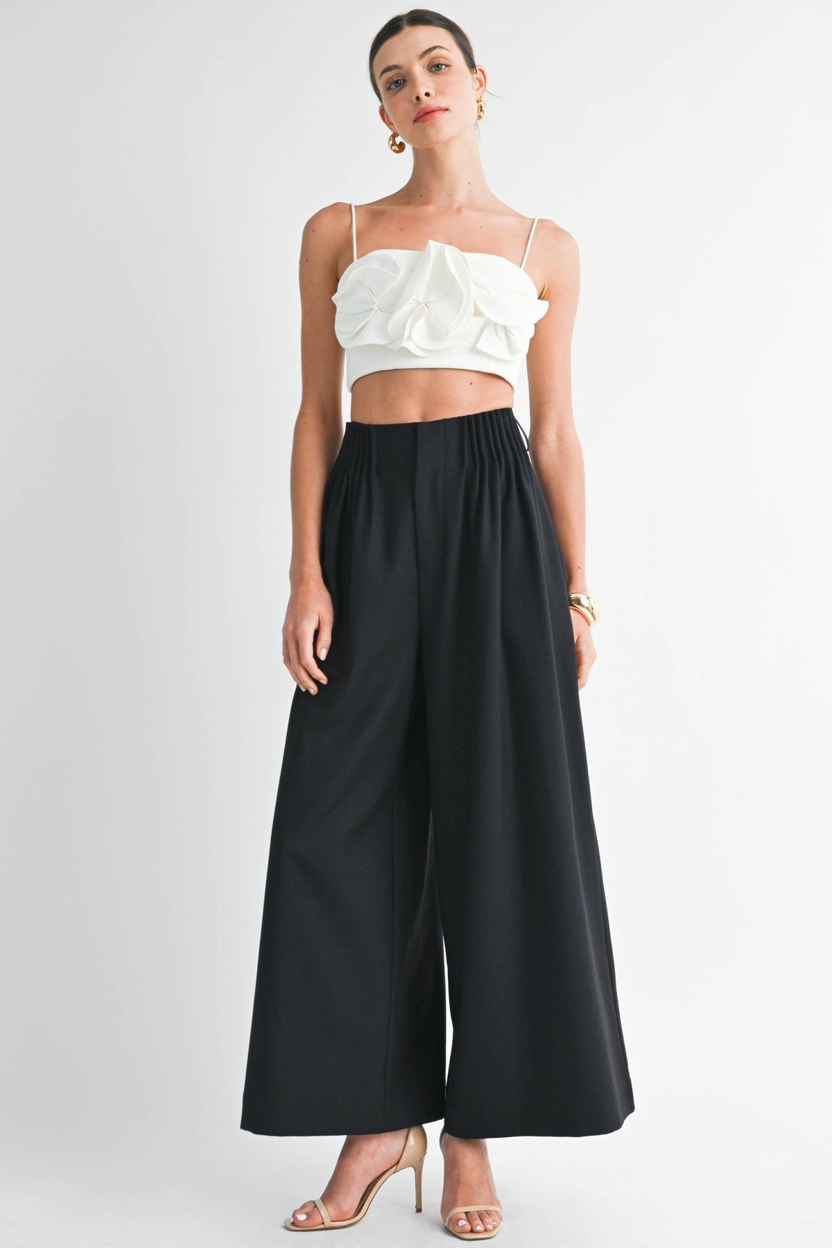 Relaxed fit Pleated Pants featuring Mid rise, wide leg with slant hip pockets, front button closure and zip fly. Perfect for both work and going out moods.